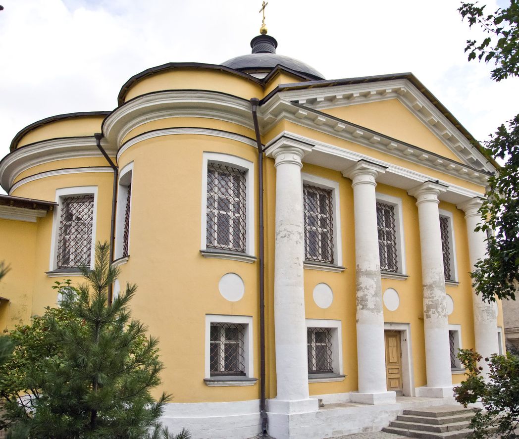 19 марта 1791 года в Синоде был подписан указ, дозволяющий сооружение Знаменского храма [4]. Его строительство продолжалось с 1791 по 1794 годы: он был заложен и построен в настоятельство архимандрита Павла, а его освящение состоялось при архимандрите Мефодии. Проектировал церковь Елизвой Семенович Назаров (1747–1822) — помощник и родственник выдающегося зодчего XVIII века Василия Ивановича Баженова [5]. Е.С. Назаров работал по заказам Н.П. Шереметева, в частности он проектировал Странноприимный дом графа.