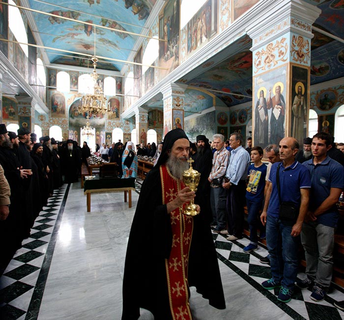 Вместе с тем текущий год стал для Пантелеимонова монастыря временем непростого духовного испытания. Незадолго до престольного праздника, 4 августа, отошел в вечность игумен обители ― схиархимандрит Иеремия (Алехин). Без малого 40 лет покойный старец нес на своих плечах нелегкий крест игуменского служения, проявляя всестороннюю заботу о насельниках монастыря. Для братии он был настоящим отцом и добрым пастырем. До самой своей блаженной кончины он кроме управления обителью, несмотря на столетний возраст и слабое здоровье, выполнял принятое им особое послушание ― ездил в город Фессалоники за продуктами для братских трапез. В своем соболезновании Святейший Патриарх Кирилл так сказал о почившем: «Во всех обстоятельствах он оставался ревностным служителем алтаря Господня, верным своему призванию, и монахом, всецело уповавшим на Христа». По прибытии в обитель и поклонения честной главе великомученика Пантелеимона, участники паломничества совершили заупокойную литию на месте погребения новопреставленного схиархимандрита Иеремии. Сугубые молитвы об упокоении старца-игумена в Небесных обителях возносились нами ежедневно, за каждой Божественной литургией и в литиях на его могиле.