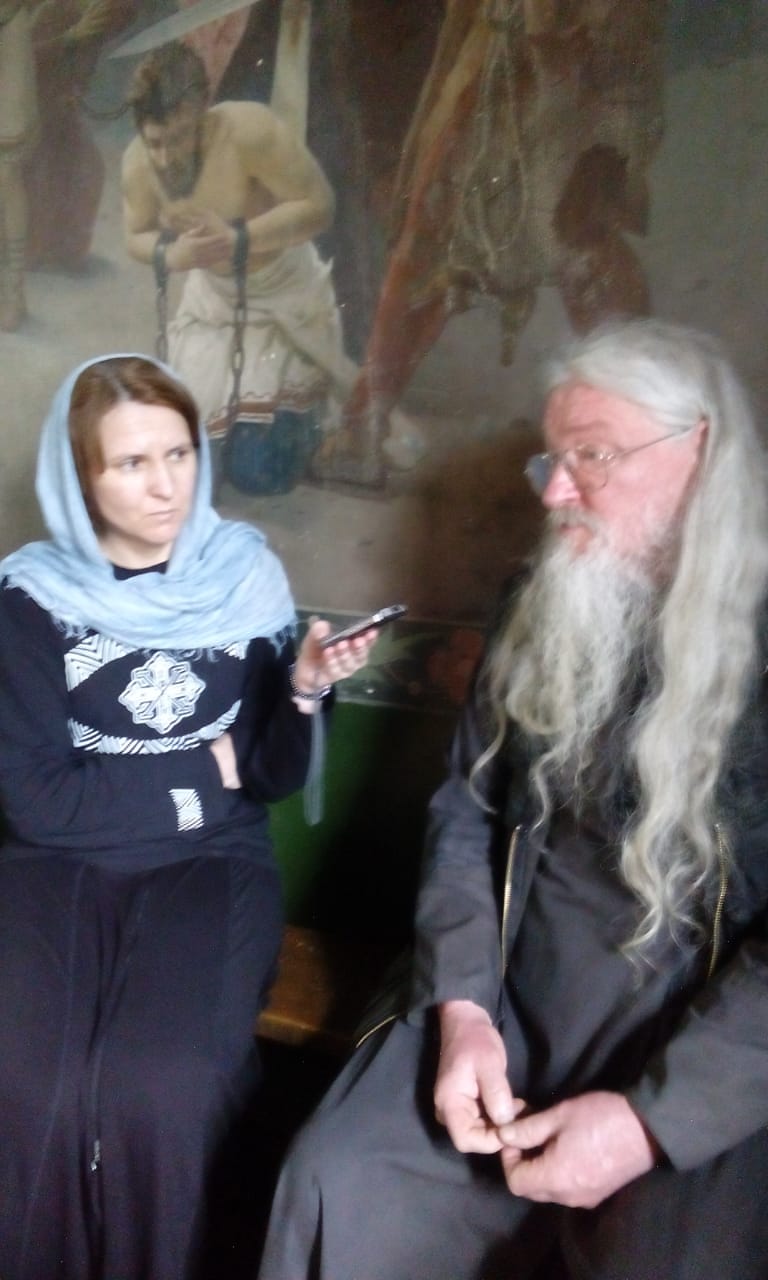Мы когда-то жили в Москве. У меня была однокомнатная квартира с окнами на храм мученика Трифона на «Рижской». И мы искали место для мастерской. Необходимо было больше пространства, чтобы картины писать. В Москве не получилось мастерскую заиметь, и мы стали искать где-то на стороне. Как-то с нашими друзьями попали в Ярославскую область, в эти леса, и здесь я увидел этот храм. Он и тогда был действующим и вообще никогда не закрывался. Батюшка здесь был и три-четыре женщины при нем. Народ, живущий рядом, приезжал на праздники. Приехать сюда было сложно, приходилось довольно долго идти пешком по дороге, по грязи или снегу. И вот это уединенное место стало для нас убежищем от городской жизни. Церковнославянский язык мы уже знали, потому что я тогда писал картины с житиями святых, и мне надо было читать о них, мы доставали старые книги, и по ним изучили церковнославянский. Стали ходить в этот храм, жена моя, будущая матушка, стала помогать старушкам на клиросе, а батюшка, отец Иоанн Семенов, взял меня в алтарь, я ему там помогал. И потихоньку мы начали тут осваиваться. Мы были только недавно крещены. Я в 34 года крестился, нас с женой вместе дома крестили.
