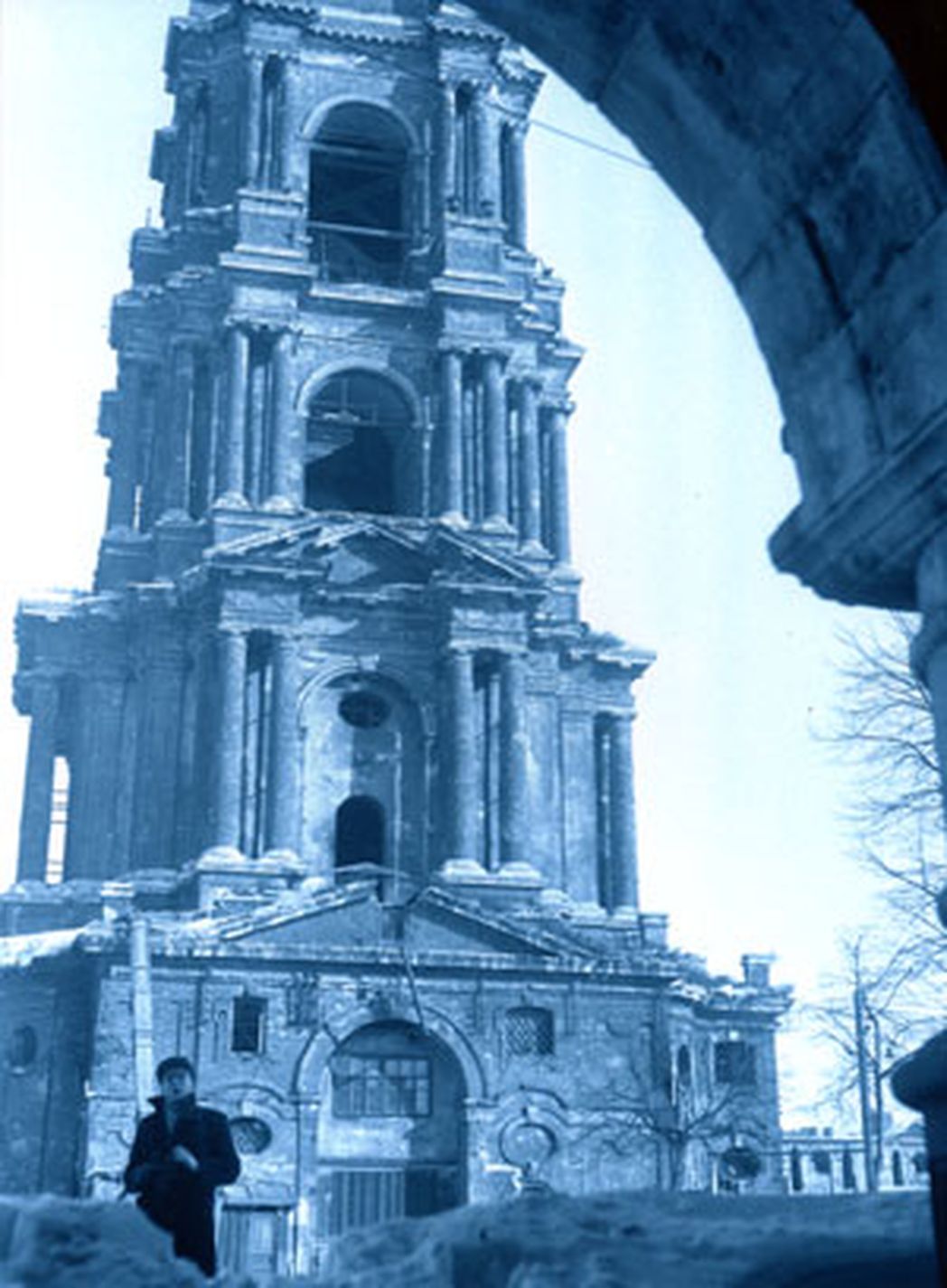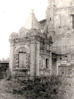 В это время доламывали все, что не успели сломать прежние хозяева. Часы с колокольни сняли и увезли, часовые колокола сняли и покололи прямо на месте. Очень хорошо помню, как увозили обломки этих колоколов. Их грузили на подводы, солнце освещало сколы, и блестели серебряные крупинки. Во время погрузки где-то на колокольне был найден запрестольный, видимо, золотой, крест. Нашедший показывал его своим товарищам, крест блестел золотом на солнце.