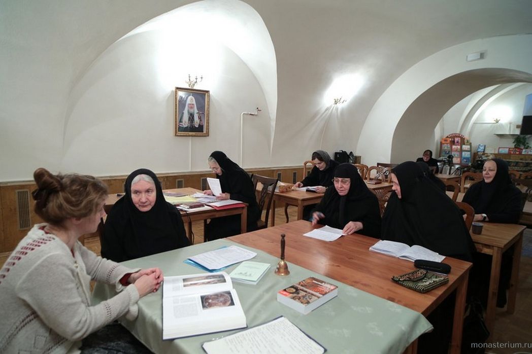 О разных аспектах монастырской жизни, в которых чувствуется сила игуменского благословения и молитвенной помощи, рассказывала мать Анувия. Один из них, чрезвычайно важный для современного монашества – учеба. Шесть лет назад при Иоанно-Предтеченском монастыре были организованы курсы дополнительного образования для монашествующих, и все эти годы сестры слушали лекции преподавателей православных и светских вузов – ведущих специалистов в своей области, сдавали им зачеты. В прошлом году был новый набор, причем число учащихся пополнили насельницы из подмосковных монастырей, а также, по благословению Святейшего Патриарха Кирилла – сестры, находящиеся на послушании в Патриархии. В общей сложности сейчас на курсах в обители святого Иоанна Предтечи занимается 55 человек. А монахиня Анувия является секретарем Межведомственной Комиссии по вопросам образования монашествующих…