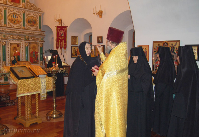 Обустраивать монашескую жизнь начали четыре девушки, которым пришлось осваивать монастырский устав одновременно с разбором груды строительного мусора. «Помню, сидим на бревне, вокруг грязь, остатки фундаментов, а так хорошо на душе…», – вспоминала впоследствии одна из монахинь. 18 декабря 2000 года в батуринской обители состоялся первый монашеский постриг. Сейчас в обители около тридцати сестер – монахини, инокини, послушницы, есть трудницы. Заведено основательное хозяйство, и помимо храмовых послушаний у насельниц много забот в трапезной, на огороде, на скотном дворе.