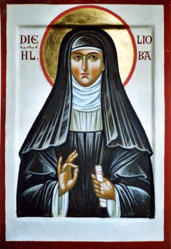 преподобную Лиобу / Лиобгиту (Lioba, Liobgytha; † ок. 781; память: 28 сентября / 11 октября), написанное в IX веке житие которой сохранилось; будучи родственницей и любимой ученицей священномученика Вонифатия, с 30-ю другими монахинями она переселилась в немецкие земли, где стала игуменьей Таубербишофсхаймской (Tauberbischofsheim) и руководила прочими монастырями, где обучались миссионеры; все почитали Лиобу за ее любовь, мудрость и другие исключительные качества, а ее деятельность сыграла значительную роль в христианизации Германии; к ней за советом обращались как церковные, так и государственные деятели; перед смертью святая удалилась в Шорнсхайм (Schornsheim); ее основные мощи находятся в Фульде;