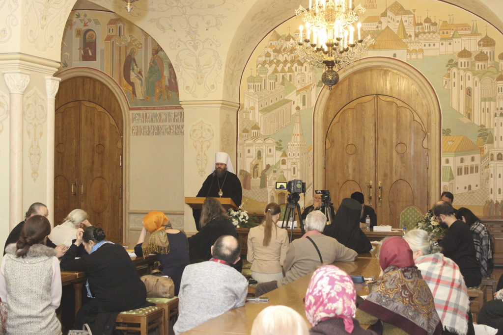 Тема доклада митрополита Калужского и Боровского Климента, председателя Издательского Совета Русской Православной Церкви, была обозначена так: «Духовное преемство: наши наставники – ученики святых (на примере старцев Оптиной и Глинской пустыней)». Но начал Владыка свое выступление с другого: кончины и погребения архимандрита Венедикта (Пенькова). Точнее – с того, каким был последний наместник Оптиной пустыни, отошедший ко Господу 22 января этого года. Митрополит Климент зачитал со смартфона сообщение, пришедшее ему от одного из насельников монастыря и взволновавшее весь зал. Главной чертой личности аввы Венедикта в нем указывалась цельность: