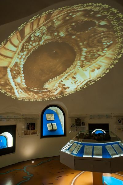 По признанию наместника монастыря игумена Гавриила (Рожнова), создание музея потребовало много сил и времени – почти года напряженнейшей работы. В первую очередь стали приводить в порядок отсыревшую из-за дождей и снега, из-за непосредственной близости Раифского озера башню XVII века. Укрепляли фундамент, делали гидроизоляцию, проводили трудоемкие строительные работы, а параллельно шли горячие обсуждения: хотя башня имеет четыре яруса, все равно пространство будет камерное – и как расположить в нем артефакты и максимально насытить эту небольшую экспозиционную площадь информацией? Масса интересных решений была найдена вместе со специалистами казанской дизайн-студии «Айбат», до этого оформлявшими музей истории соседнего Свияжского Богородице-Успенского мужского монастыря. Входишь в музей Раифы и сразу видишь перед собой две необычные карты. Топографическая карта-схема данной местности нарисована на полу с изображением животных и деревьев, условным обозначением селений и рек, и сделано всё в стилистике XVIII века. Масштабы, как пояснили нам, не соблюдены, иначе не удалось бы показать рядом с Раифской обителью в Татарстане другие близлежащие монастыри: Свияжский, Макарьевский, Зилантов, Кизический, Седмиозерский. А это очень важно – представить форпосты Православия на рубеже Европы и Азии. На стене дизайнеры изобразили Синайский полуостров и две Раифы. Ту, что на восточном берегу Красного моря, в ста с лишним километрах от Синая. И Раифу в Волжско-Камском заповеднике, в тридцати километрах от Казани. Вот где начинается перекличка времен и географических мест!